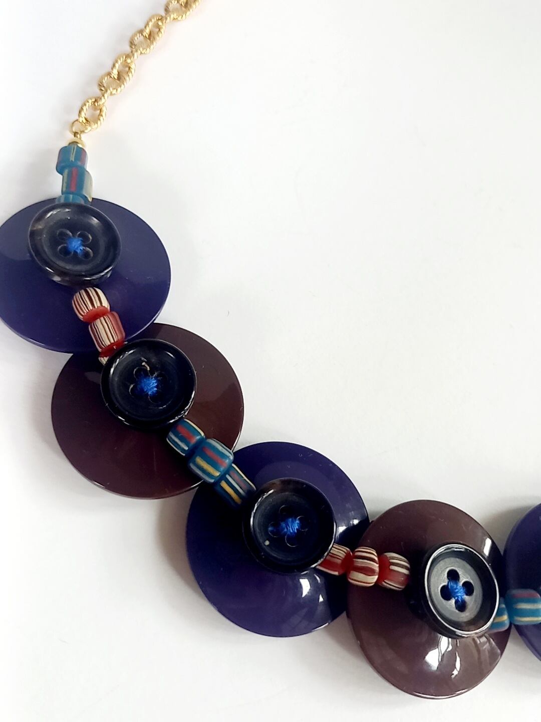 ボタンとビーズの魅力を活かしたリバーシブルデザインの「Pansy」。