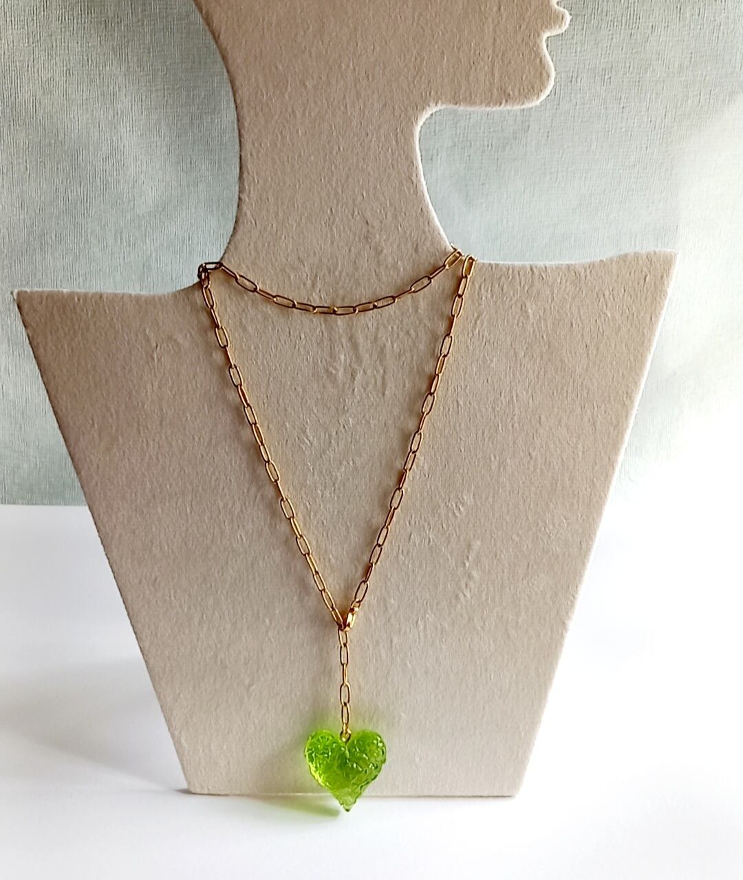 さわやかなgreenカラーと大きめのheartチャームが目を引くアクセサリーです。
