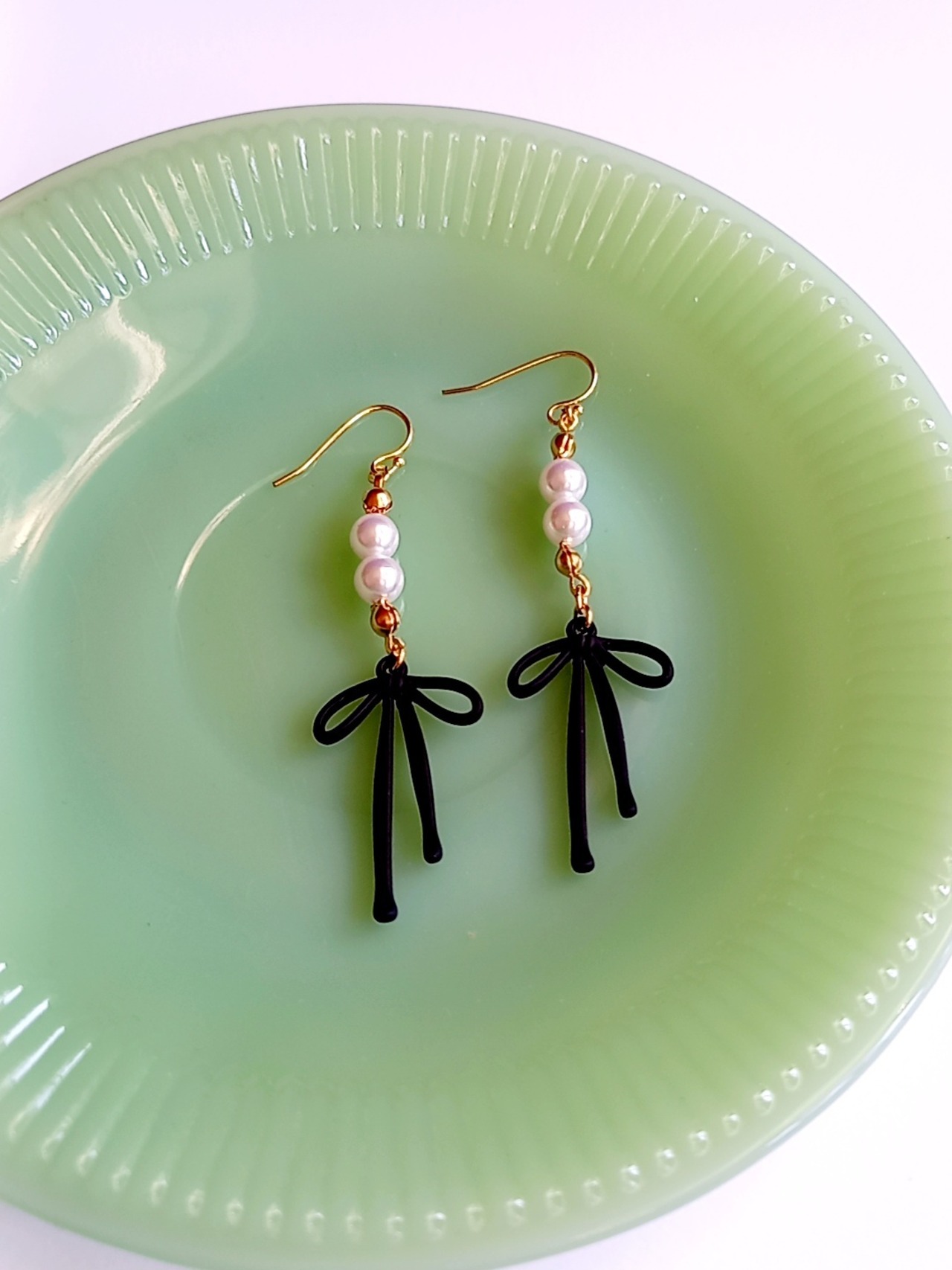 -pearl×ribbon pierce-